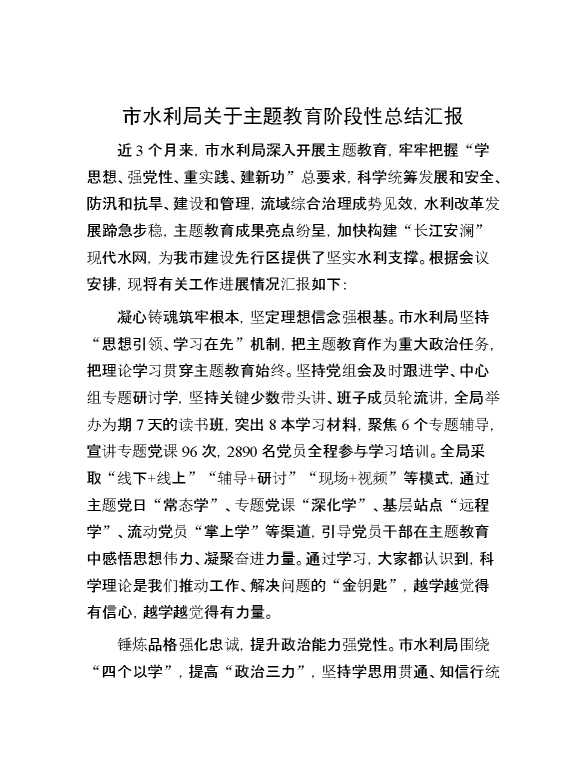 市水利局关于主题教育阶段性总结汇报 2023-12-16 Word模板 128 购买前,请一定要先点击这里看看,欢迎持续关注,精彩模板每天推送 预览结束,本文件为word文档,一共4页,共1855字,请购买后,下载后查看 购买前,请一定要先点击这里看看,欢迎持续关注,精彩模板每天推送 资源下载下载价格29 RMBVIP免费升级VIP点击检测网盘有效后购买有任何充值和下载问题请加微信:xuexixuexi66 0 党课及生活会