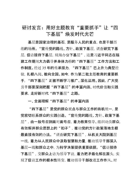 研讨发言:用好主题教育“重要抓手” 让“四下基层”焕发时代光芒 2023-12-16 Word模板 116 购买前,请一定要先点击这里看看,欢迎持续关注,精彩模板每天推送 预览结束,本文件为word文档,一共4页,共1757字,请购买后,下载后查看 购买前,请一定要先点击这里看看,欢迎持续关注,精彩模板每天推送 资源下载下载价格29 RMBVIP免费升级VIP点击检测网盘有效后购买有任何充值和下载问题请加微信:xuexixuexi66 0 党课及生活会