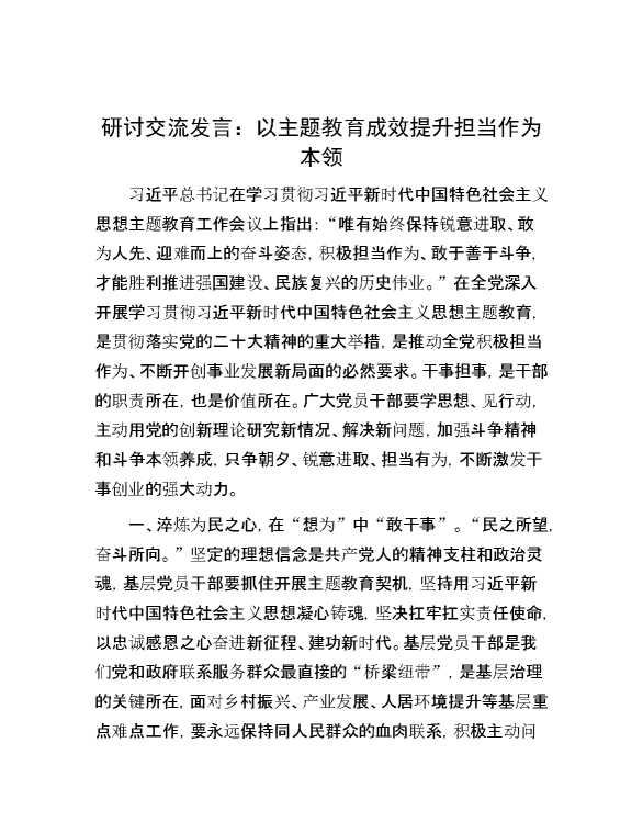 研讨交流发言:以主题教育成效提升担当作为本领 2023-12-16 Word模板 112 购买前,请一定要先点击这里看看,欢迎持续关注,精彩模板每天推送 预览结束,本文件为word文档,一共3页,共1060字,请购买后,下载后查看 购买前,请一定要先点击这里看看,欢迎持续关注,精彩模板每天推送 资源下载下载价格29 RMBVIP免费升级VIP点击检测网盘有效后购买有任何充值和下载问题请加微信:xuexixuexi66 0 党课及生活会
