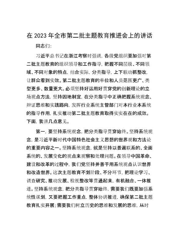 在2023年全市第二批主题教育推进会上的讲话 2023-12-16 Word模板 121 购买前,请一定要先点击这里看看,欢迎持续关注,精彩模板每天推送 预览结束,本文件为word文档,一共3页,共1377字,请购买后,下载后查看 购买前,请一定要先点击这里看看,欢迎持续关注,精彩模板每天推送 资源下载下载价格29 RMBVIP免费升级VIP点击检测网盘有效后购买有任何充值和下载问题请加微信:xuexixuexi66 0 党课及生活会