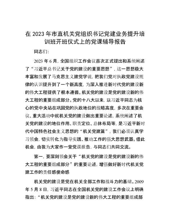 在2023年市直机关党组织书记党建业务提升培训班开班仪式上的党课辅导报告 2023-12-16 Word模板 122 购买前,请一定要先点击这里看看,欢迎持续关注,精彩模板每天推送 预览结束,本文件为word文档,一共11页,共5082字,请购买后,下载后查看 购买前,请一定要先点击这里看看,欢迎持续关注,精彩模板每天推送 资源下载下载价格29 RMBVIP免费升级VIP点击检测网盘有效后购买有任何充值和下载问题请加微信:xuexixuexi66 0 党课及生活会