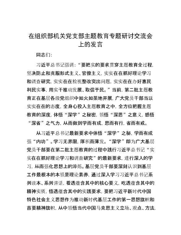 在组织部机关党支部主题教育专题研讨交流会上的发言 2023-12-16 Word模板 117 购买前,请一定要先点击这里看看,欢迎持续关注,精彩模板每天推送 预览结束,本文件为word文档,一共3页,共1332字,请购买后,下载后查看 购买前,请一定要先点击这里看看,欢迎持续关注,精彩模板每天推送 资源下载下载价格29 RMBVIP免费升级VIP点击检测网盘有效后购买有任何充值和下载问题请加微信:xuexixuexi66 0 党课及生活会