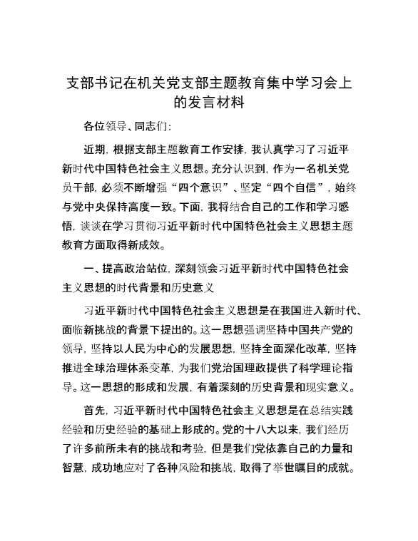 支部书记在机关党支部主题教育集中学习会上的发言材料 2023-12-16 Word模板 122 购买前,请一定要先点击这里看看,欢迎持续关注,精彩模板每天推送 预览结束,本文件为word文档,一共4页,共1934字,请购买后,下载后查看 购买前,请一定要先点击这里看看,欢迎持续关注,精彩模板每天推送 资源下载下载价格29 RMBVIP免费升级VIP点击检测网盘有效后购买有任何充值和下载问题请加微信:xuexixuexi66 0 党课及生活会