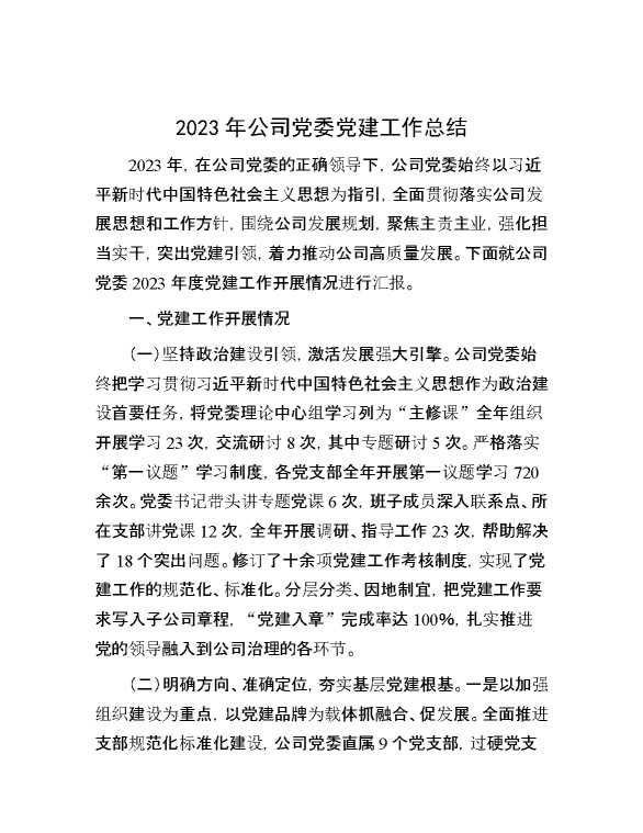 2023年公司党委党建工作总结 2023-12-25 Word模板 128 购买前,请一定要先点击这里看看,欢迎持续关注,精彩模板每天推送 预览结束,本文件为word文档,一共5页,共2302字,请购买后,下载后查看 购买前,请一定要先点击这里看看,欢迎持续关注,精彩模板每天推送 资源下载下载价格29 RMBVIP免费升级VIP点击检测网盘有效后购买有任何充值和下载问题请加微信:xuexixuexi66 0 总结汇报