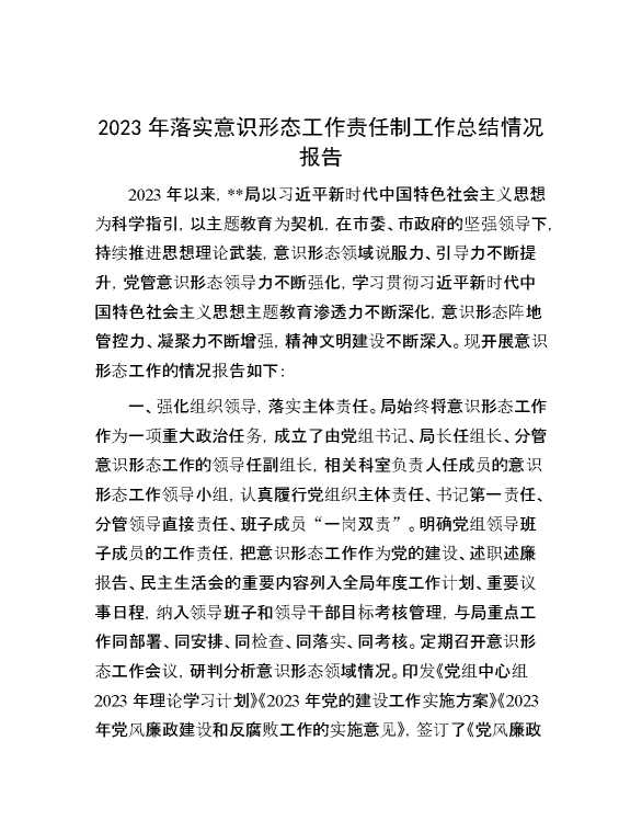 2023年落实意识形态工作责任制工作总结情况报告 2023-12-25 Word模板 141 购买前,请一定要先点击这里看看,欢迎持续关注,精彩模板每天推送 预览结束,本文件为word文档,一共5页,共2102字,请购买后,下载后查看 购买前,请一定要先点击这里看看,欢迎持续关注,精彩模板每天推送 资源下载下载价格29 RMBVIP免费升级VIP点击检测网盘有效后购买有任何充值和下载问题请加微信:xuexixuexi66 0 总结汇报