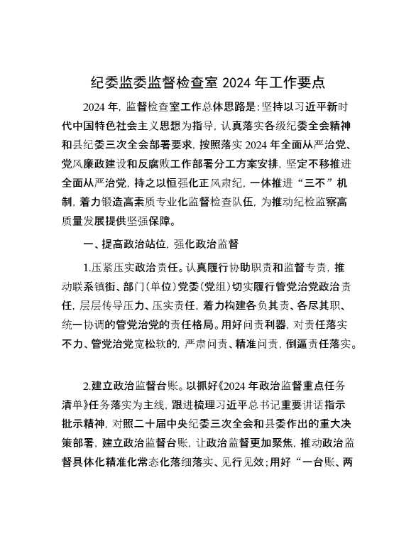 纪委监委监督检查室2024年工作要点 2024-01-11 Word模板 115 购买前,请一定要先点击这里看看,欢迎持续关注,精彩模板每天推送 预览结束,本文件为word文档,一共7页,共2908字,请购买后,下载后查看 购买前,请一定要先点击这里看看,欢迎持续关注,精彩模板每天推送 资源下载下载价格29 RMBVIP免费升级VIP点击检测网盘有效后购买有任何充值和下载问题请加微信:xuexixuexi66 0 方案计划