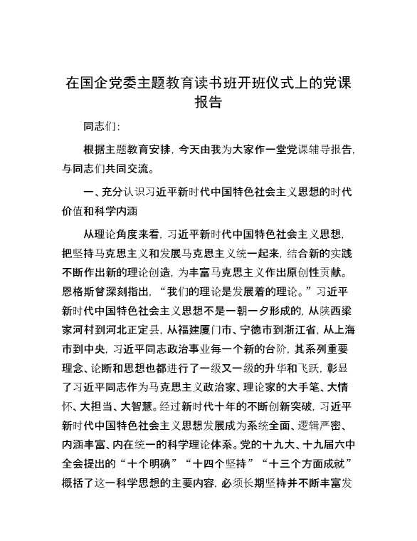 在国企党委主题教育读书班开班仪式上的党课报告 2024-01-11 Word模板 128 购买前,请一定要先点击这里看看,欢迎持续关注,精彩模板每天推送 预览结束,本文件为word文档,一共11页,共5626字,请购买后,下载后查看 购买前,请一定要先点击这里看看,欢迎持续关注,精彩模板每天推送 资源下载下载价格29 RMBVIP免费升级VIP点击检测网盘有效后购买有任何充值和下载问题请加微信:xuexixuexi66 0 党课及生活会