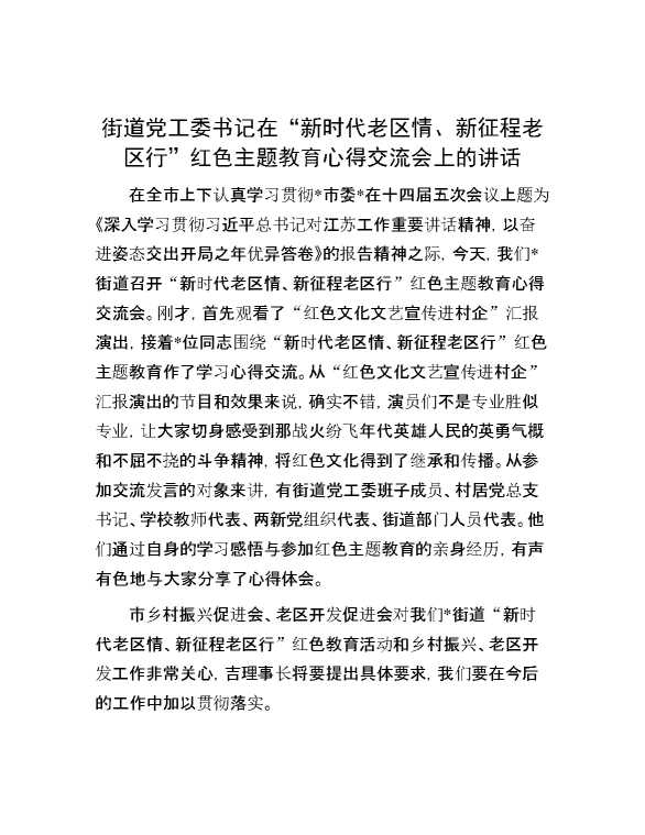 街道党工委书记在“新时代老区情、新征程老区行”红色主题教育心得交流会上的讲话 2024-01-11 Word模板 133 购买前,请一定要先点击这里看看,欢迎持续关注,精彩模板每天推送 预览结束,本文件为word文档,一共9页,共4368字,请购买后,下载后查看 购买前,请一定要先点击这里看看,欢迎持续关注,精彩模板每天推送 资源下载下载价格29 RMBVIP免费升级VIP点击检测网盘有效后购买有任何充值和下载问题请加微信:xuexixuexi66 0 党课及生活会
