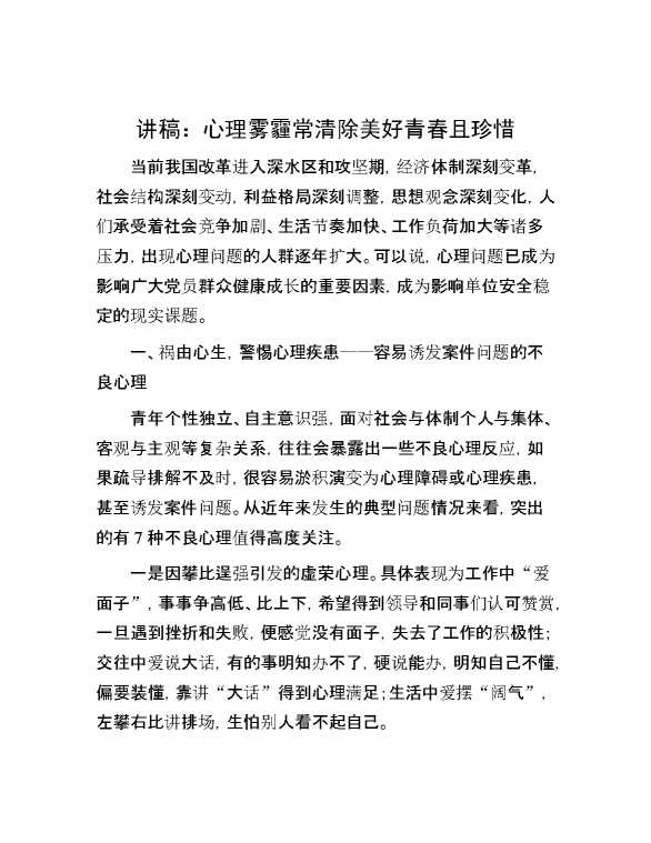 讲稿:心理雾霾常清除 美好青春且珍惜 2024-01-11 Word模板 136 购买前,请一定要先点击这里看看,欢迎持续关注,精彩模板每天推送 预览结束,本文件为word文档,一共9页,共4438字,请购买后,下载后查看 购买前,请一定要先点击这里看看,欢迎持续关注,精彩模板每天推送 资源下载下载价格29 RMBVIP免费升级VIP点击检测网盘有效后购买有任何充值和下载问题请加微信:xuexixuexi66 0 党课及生活会