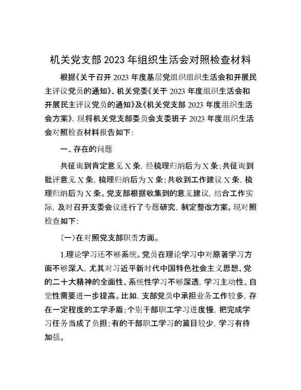 机关党支部2023年组织生活会对照检查材料 2024-01-11 Word模板 136 购买前,请一定要先点击这里看看,欢迎持续关注,精彩模板每天推送 预览结束,本文件为word文档,一共6页,共2667字,请购买后,下载后查看 购买前,请一定要先点击这里看看,欢迎持续关注,精彩模板每天推送 资源下载下载价格29 RMBVIP免费升级VIP点击检测网盘有效后购买有任何充值和下载问题请加微信:xuexixuexi66 0 党课及生活会