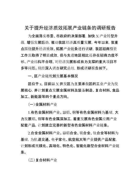 关于提升经济质效拓展产业链条的调研报告 2024-01-15 Word模板 117 购买前,请一定要先点击这里看看,欢迎持续关注,精彩模板每天推送 预览结束,本文件为word文档,一共7页,共2957字,请购买后,下载后查看 购买前,请一定要先点击这里看看,欢迎持续关注,精彩模板每天推送 资源下载下载价格29 RMBVIP免费升级VIP点击检测网盘有效后购买有任何充值和下载问题请加微信:xuexixuexi66 0 总结汇报