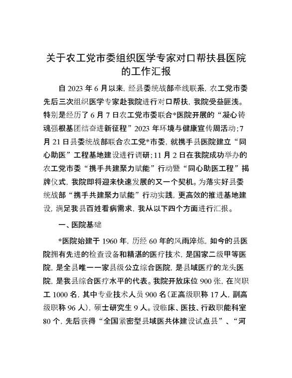 关于农工党市委组织医学专家对口帮扶县医院的工作汇报 2024-01-15 Word模板 117 购买前,请一定要先点击这里看看,欢迎持续关注,精彩模板每天推送 预览结束,本文件为word文档,一共5页,共2021字,请购买后,下载后查看 购买前,请一定要先点击这里看看,欢迎持续关注,精彩模板每天推送 资源下载下载价格29 RMBVIP免费升级VIP点击检测网盘有效后购买有任何充值和下载问题请加微信:xuexixuexi66 0 总结汇报