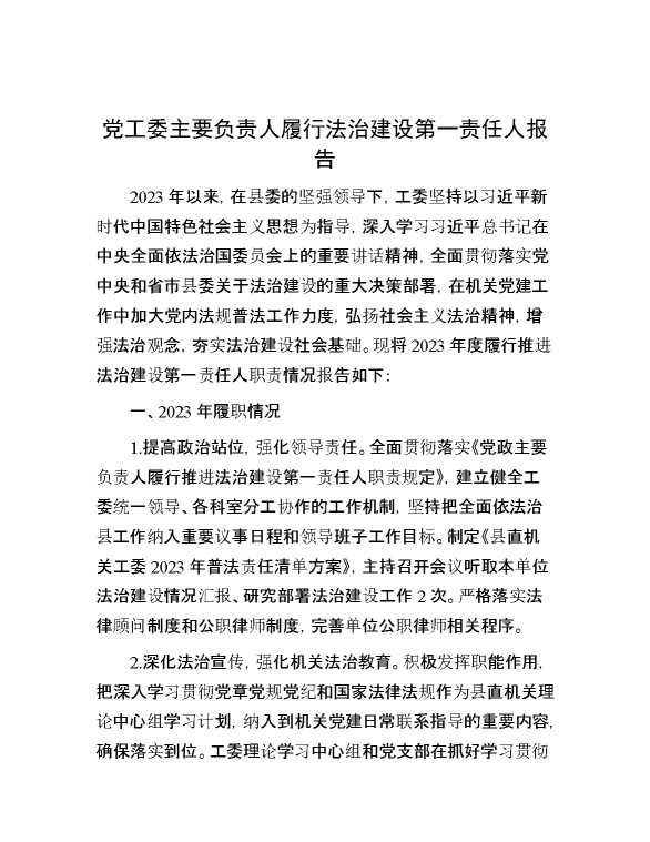 党工委主要负责人履行法治建设第一责任人报告 2024-01-15 Word模板 96 购买前,请一定要先点击这里看看,欢迎持续关注,精彩模板每天推送 预览结束,本文件为word文档,一共4页,共1825字,请购买后,下载后查看 购买前,请一定要先点击这里看看,欢迎持续关注,精彩模板每天推送 资源下载下载价格29 RMBVIP免费升级VIP点击检测网盘有效后购买有任何充值和下载问题请加微信:xuexixuexi66 0 总结汇报