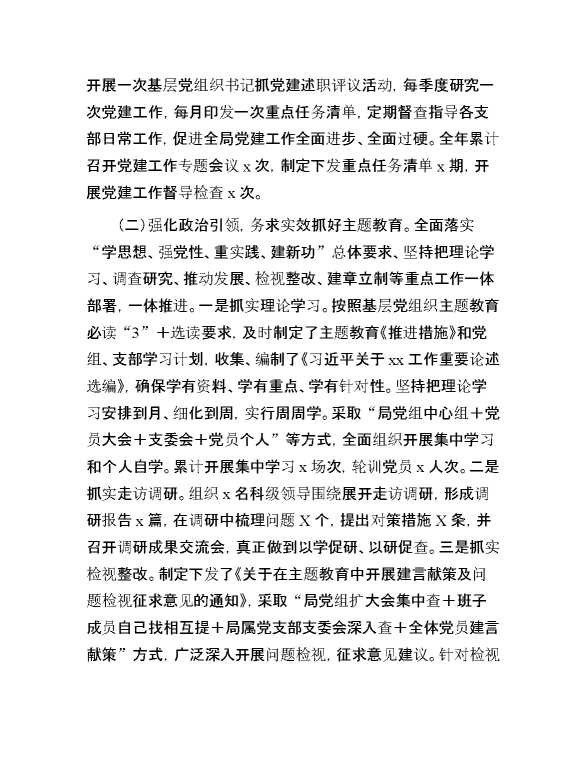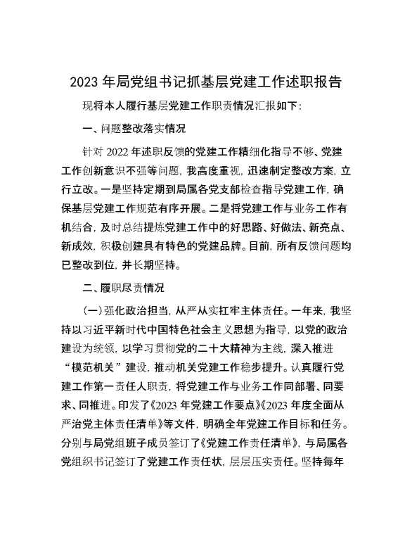 2023年局党组书记抓基层党建工作述职报告 2024-01-15 Word模板 116 购买前,请一定要先点击这里看看,欢迎持续关注,精彩模板每天推送 预览结束,本文件为word文档,一共5页,共2311字,请购买后,下载后查看 购买前,请一定要先点击这里看看,欢迎持续关注,精彩模板每天推送 资源下载下载价格29 RMBVIP免费升级VIP点击检测网盘有效后购买有任何充值和下载问题请加微信:xuexixuexi66 0 总结汇报