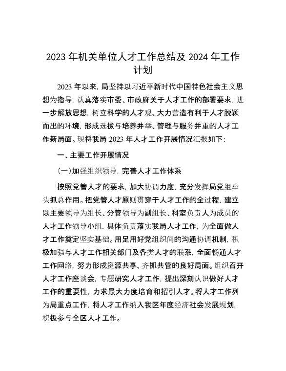 2023年机关单位人才工作总结及2024年工作计划 2024-01-15 Word模板 118 购买前,请一定要先点击这里看看,欢迎持续关注,精彩模板每天推送 预览结束,本文件为word文档,一共4页,共1466字,请购买后,下载后查看 购买前,请一定要先点击这里看看,欢迎持续关注,精彩模板每天推送 资源下载下载价格29 RMBVIP免费升级VIP点击检测网盘有效后购买有任何充值和下载问题请加微信:xuexixuexi66 0 总结汇报