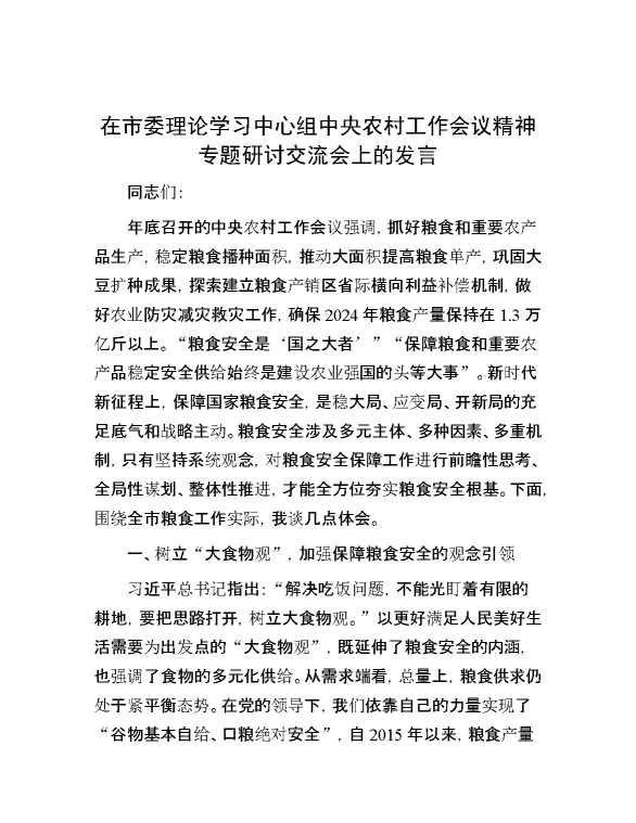 在市委理论学习中心组中央农村工作会议精神专题研讨交流会上的发言 2024-01-15 Word模板 107 购买前,请一定要先点击这里看看,欢迎持续关注,精彩模板每天推送 预览结束,本文件为word文档,一共5页,共2290字,请购买后,下载后查看 购买前,请一定要先点击这里看看,欢迎持续关注,精彩模板每天推送 资源下载下载价格29 RMBVIP免费升级VIP点击检测网盘有效后购买有任何充值和下载问题请加微信:xuexixuexi66 0 演讲发言