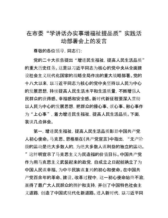 在市委“学讲话 办实事 增福祉 提品质”实践活动部署会上的发言 2024-01-15 Word模板 99 购买前,请一定要先点击这里看看,欢迎持续关注,精彩模板每天推送 预览结束,本文件为word文档,一共4页,共1848字,请购买后,下载后查看 购买前,请一定要先点击这里看看,欢迎持续关注,精彩模板每天推送 资源下载下载价格29 RMBVIP免费升级VIP点击检测网盘有效后购买有任何充值和下载问题请加微信:xuexixuexi66 0 演讲发言