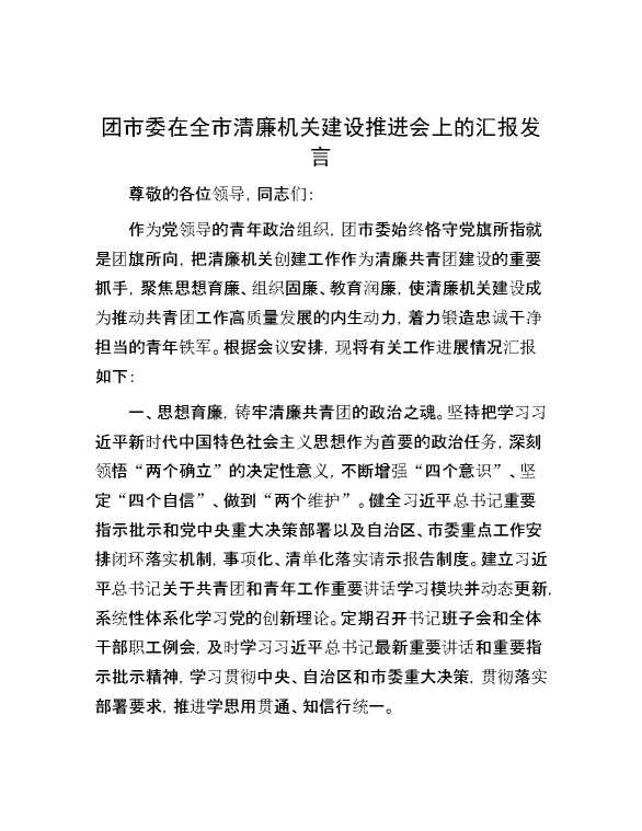 团市委在全市清廉机关建设推进会上的汇报发言 2024-01-18 Word模板 116 购买前,请一定要先点击这里看看,欢迎持续关注,精彩模板每天推送 预览结束,本文件为word文档,一共3页,共1045字,请购买后,下载后查看 购买前,请一定要先点击这里看看,欢迎持续关注,精彩模板每天推送 资源下载下载价格29 RMBVIP免费升级VIP点击检测网盘有效后购买有任何充值和下载问题请加微信:xuexixuexi66 0 演讲发言