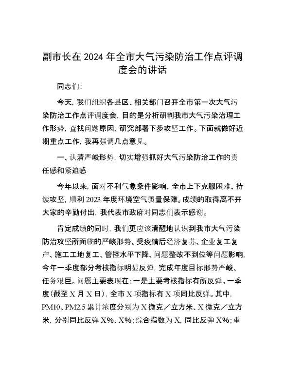 副市长在2024年全市大气污染防治工作点评调度会的讲话 2024-01-18 Word模板 110 购买前,请一定要先点击这里看看,欢迎持续关注,精彩模板每天推送 预览结束,本文件为word文档,一共8页,共3805字,请购买后,下载后查看 购买前,请一定要先点击这里看看,欢迎持续关注,精彩模板每天推送 资源下载下载价格29 RMBVIP免费升级VIP点击检测网盘有效后购买有任何充值和下载问题请加微信:xuexixuexi66 0 演讲发言