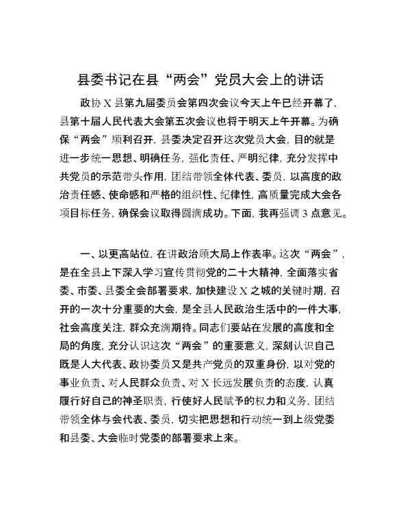 县委书记在县“两会”党员大会上的讲话 2024-01-18 Word模板 126 购买前,请一定要先点击这里看看,欢迎持续关注,精彩模板每天推送 预览结束,本文件为word文档,一共4页,共1554字,请购买后,下载后查看 购买前,请一定要先点击这里看看,欢迎持续关注,精彩模板每天推送 资源下载下载价格29 RMBVIP免费升级VIP点击检测网盘有效后购买有任何充值和下载问题请加微信:xuexixuexi66 0 演讲发言
