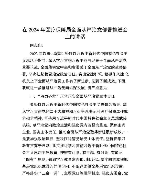 在2024年医疗保障局全面从严治党部署推进会上的讲话 2024-01-18 Word模板 131 购买前,请一定要先点击这里看看,欢迎持续关注,精彩模板每天推送 预览结束,本文件为word文档,一共7页,共3440字,请购买后,下载后查看 购买前,请一定要先点击这里看看,欢迎持续关注,精彩模板每天推送 资源下载下载价格29 RMBVIP免费升级VIP点击检测网盘有效后购买有任何充值和下载问题请加微信:xuexixuexi66 0 演讲发言