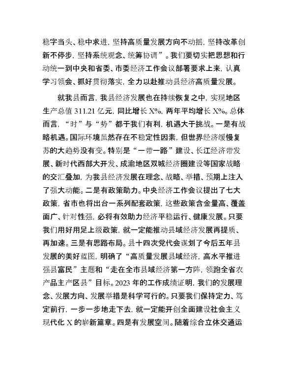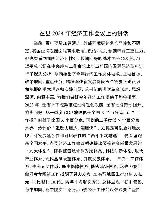 在县2024年经济工作会议上的讲话 2024-01-18 Word模板 127 购买前,请一定要先点击这里看看,欢迎持续关注,精彩模板每天推送 预览结束,本文件为word文档,一共12页,共6298字,请购买后,下载后查看 购买前,请一定要先点击这里看看,欢迎持续关注,精彩模板每天推送 资源下载下载价格29 RMBVIP免费升级VIP点击检测网盘有效后购买有任何充值和下载问题请加微信:xuexixuexi66 0 演讲发言