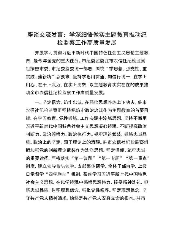 座谈交流发言:学深细悟做实主题教育 推动纪检监察工作高质量发展 2024-01-18 Word模板 132 购买前,请一定要先点击这里看看,欢迎持续关注,精彩模板每天推送 预览结束,本文件为word文档,一共5页,共2207字,请购买后,下载后查看 购买前,请一定要先点击这里看看,欢迎持续关注,精彩模板每天推送 资源下载下载价格29 RMBVIP免费升级VIP点击检测网盘有效后购买有任何充值和下载问题请加微信:xuexixuexi66 0 演讲发言