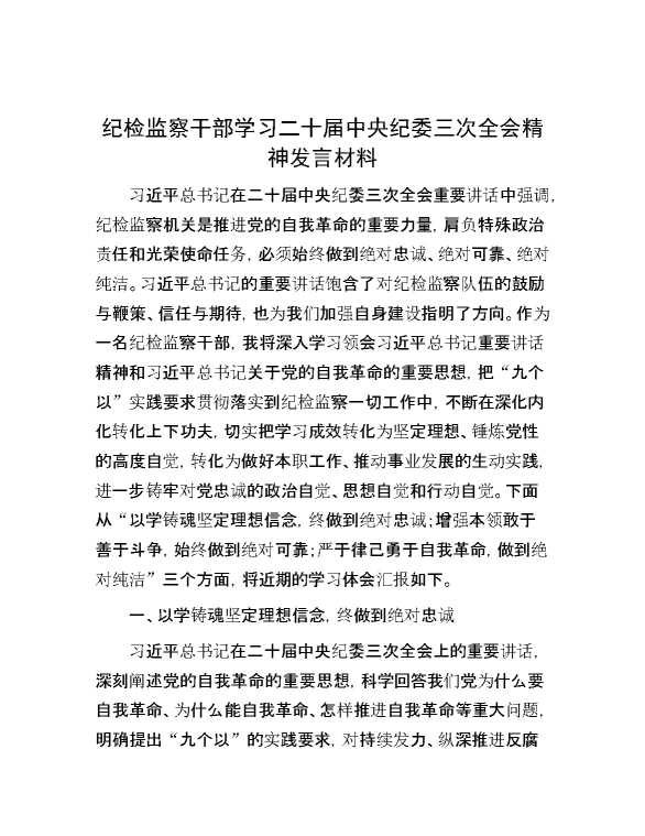 纪检监察干部学习二十届中央纪委三次全会精神发言材料 2024-01-18 Word模板 125 购买前,请一定要先点击这里看看,欢迎持续关注,精彩模板每天推送 预览结束,本文件为word文档,一共5页,共2453字,请购买后,下载后查看 购买前,请一定要先点击这里看看,欢迎持续关注,精彩模板每天推送 资源下载下载价格29 RMBVIP免费升级VIP点击检测网盘有效后购买有任何充值和下载问题请加微信:xuexixuexi66 0 演讲发言