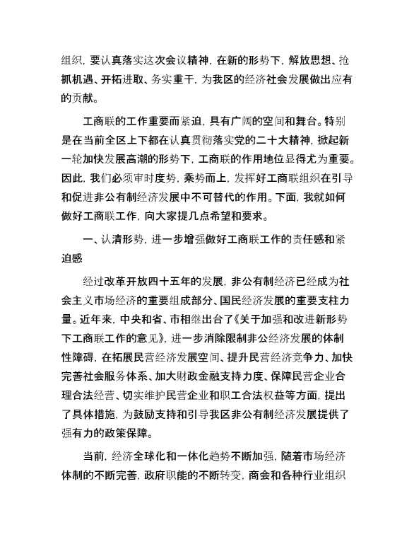 区委副书记在区工商业联合会代表大会上的讲话 2024-01-18 Word模板 121 购买前,请一定要先点击这里看看,欢迎持续关注,精彩模板每天推送 预览结束,本文件为word文档,一共7页,共3385字,请购买后,下载后查看 购买前,请一定要先点击这里看看,欢迎持续关注,精彩模板每天推送 资源下载下载价格29 RMBVIP免费升级VIP点击检测网盘有效后购买有任何充值和下载问题请加微信:xuexixuexi66 0 演讲发言