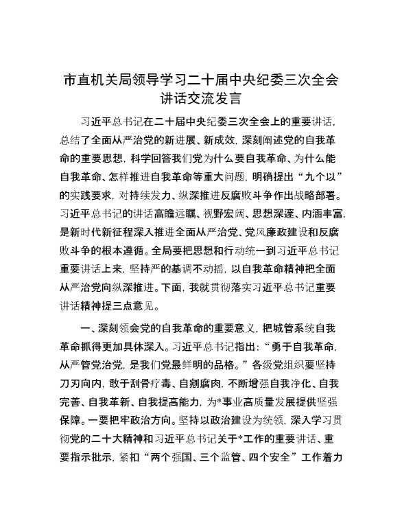 市直机关局领导学习二十届中央纪委三次全会讲话交流发言 2024-01-18 Word模板 134 购买前,请一定要先点击这里看看,欢迎持续关注,精彩模板每天推送 预览结束,本文件为word文档,一共4页,共2029字,请购买后,下载后查看 购买前,请一定要先点击这里看看,欢迎持续关注,精彩模板每天推送 资源下载下载价格29 RMBVIP免费升级VIP点击检测网盘有效后购买有任何充值和下载问题请加微信:xuexixuexi66 0 演讲发言