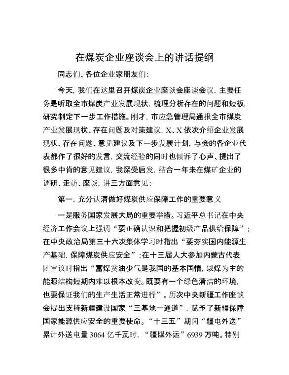 在煤炭企业座谈会上的讲话提纲 2024-01-18 Word模板 132 购买前,请一定要先点击这里看看,欢迎持续关注,精彩模板每天推送 预览结束,本文件为word文档,一共5页,共2324字,请购买后,下载后查看 购买前,请一定要先点击这里看看,欢迎持续关注,精彩模板每天推送 资源下载下载价格29 RMBVIP免费升级VIP点击检测网盘有效后购买有任何充值和下载问题请加微信:xuexixuexi66 0 演讲发言