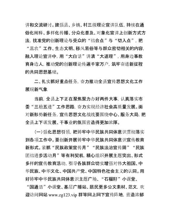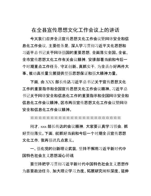 在全县宣传思想文化工作会议上的讲话 2024-01-18 Word模板 126 购买前,请一定要先点击这里看看,欢迎持续关注,精彩模板每天推送 预览结束,本文件为word文档,一共9页,共4199字,请购买后,下载后查看 购买前,请一定要先点击这里看看,欢迎持续关注,精彩模板每天推送 资源下载下载价格29 RMBVIP免费升级VIP点击检测网盘有效后购买有任何充值和下载问题请加微信:xuexixuexi66 0 演讲发言