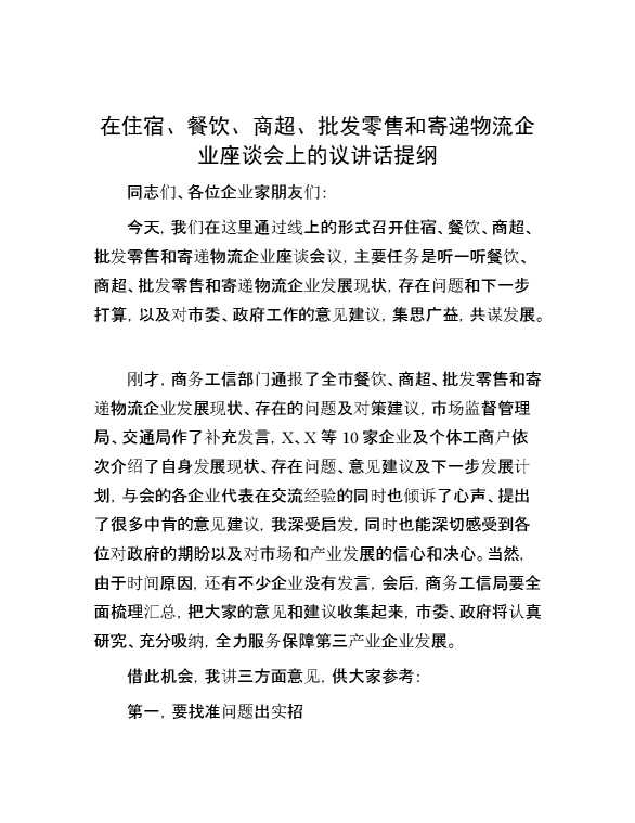在住宿、餐饮、商超、批发零售和寄递物流企业座谈会上的议讲话提纲 2024-01-18 Word模板 167 购买前,请一定要先点击这里看看,欢迎持续关注,精彩模板每天推送 预览结束,本文件为word文档,一共5页,共2166字,请购买后,下载后查看 购买前,请一定要先点击这里看看,欢迎持续关注,精彩模板每天推送 资源下载下载价格29 RMBVIP免费升级VIP点击检测网盘有效后购买有任何充值和下载问题请加微信:xuexixuexi66 0 演讲发言