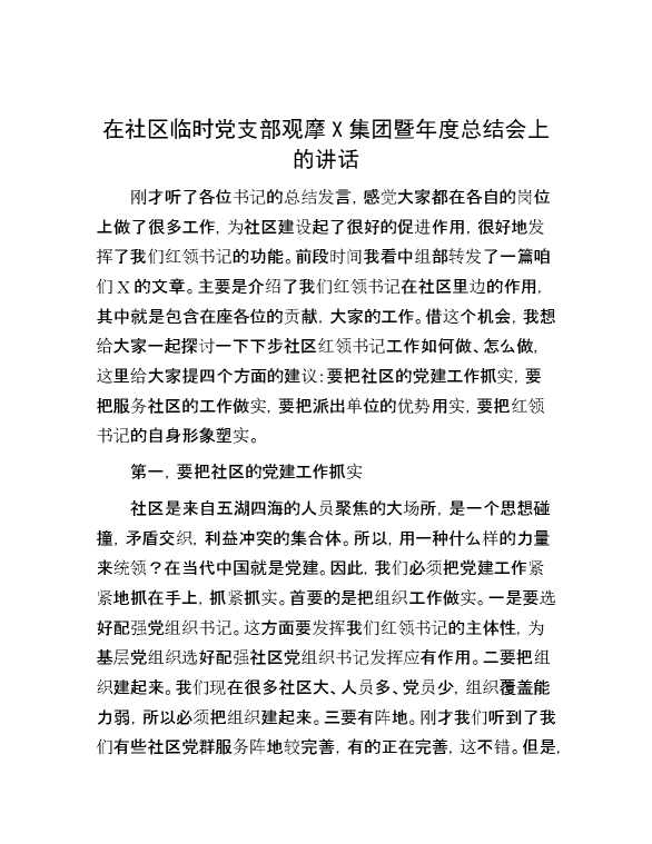 在社区临时党支部观摩X集团暨年度总结会上的讲话 2024-01-18 Word模板 119 购买前,请一定要先点击这里看看,欢迎持续关注,精彩模板每天推送 预览结束,本文件为word文档,一共6页,共3085字,请购买后,下载后查看 购买前,请一定要先点击这里看看,欢迎持续关注,精彩模板每天推送 资源下载下载价格29 RMBVIP免费升级VIP点击检测网盘有效后购买有任何充值和下载问题请加微信:xuexixuexi66 0 演讲发言