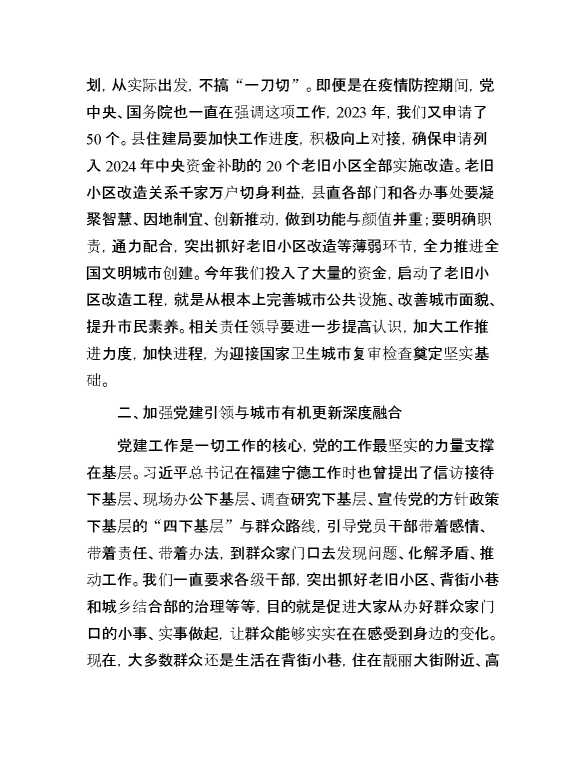 县区委书记在全区党建引领城市有机更新暨老旧小区改造工作推进会上的讲话 2024-02-02 Word模板 118 购买前,请一定要先点击这里看看,欢迎持续关注,精彩模板每天推送 预览结束,本文件为word文档,一共5页,共2234字,请购买后,下载后查看 购买前,请一定要先点击这里看看,欢迎持续关注,精彩模板每天推送 资源下载下载价格29 RMBVIP免费升级VIP点击检测网盘有效后购买有任何充值和下载问题请加微信:xuexixuexi66 0 演讲发言