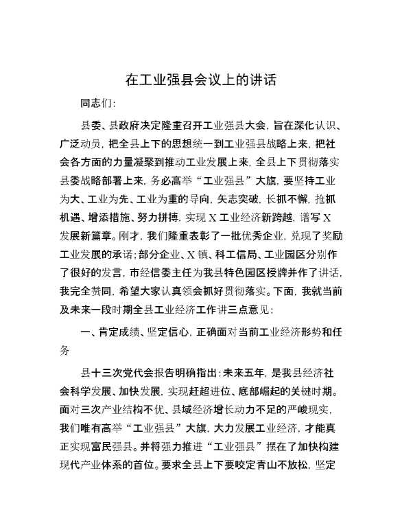 在工业强县会议上的讲话 2024-02-19 Word模板 104 购买前,请一定要先点击这里看看,欢迎持续关注,精彩模板每天推送 预览结束,本文件为word文档,一共16页,共8007字,请购买后,下载后查看 购买前,请一定要先点击这里看看,欢迎持续关注,精彩模板每天推送 资源下载下载价格29 RMBVIP免费升级VIP点击检测网盘有效后购买有任何充值和下载问题请加微信:xuexixuexi66 0 演讲发言