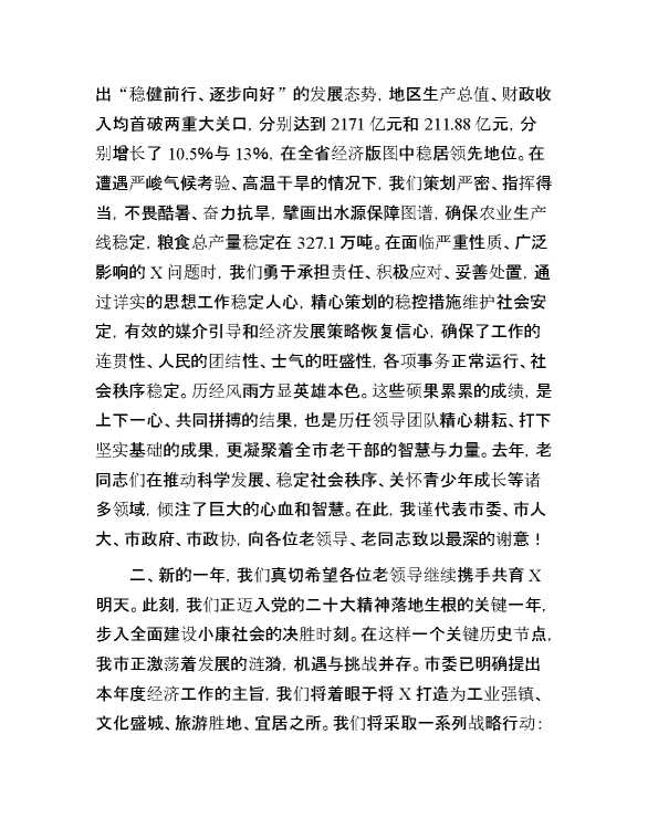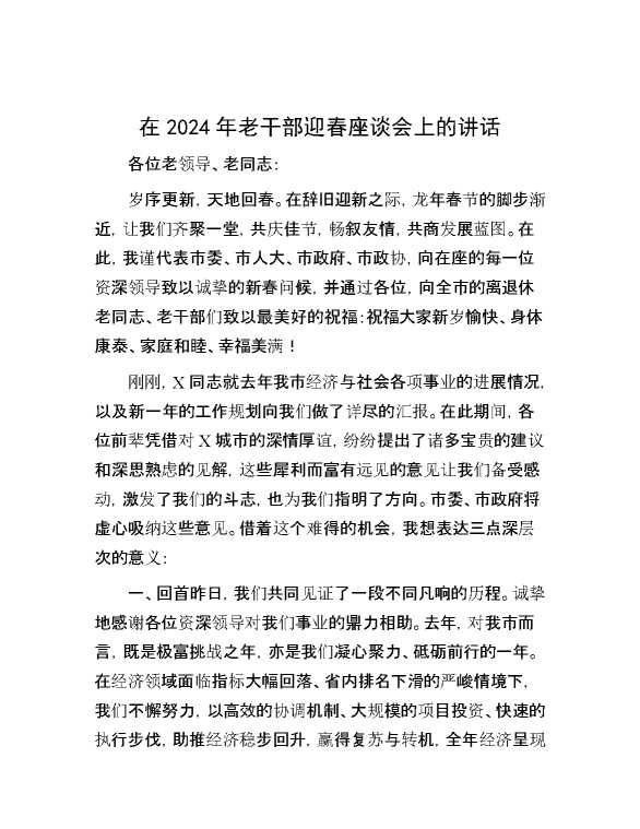 在2024年老干部迎春座谈会上的讲话 2024-02-19 Word模板 107 购买前,请一定要先点击这里看看,欢迎持续关注,精彩模板每天推送 预览结束,本文件为word文档,一共4页,共1770字,请购买后,下载后查看 购买前,请一定要先点击这里看看,欢迎持续关注,精彩模板每天推送 资源下载下载价格29 RMBVIP免费升级VIP点击检测网盘有效后购买有任何充值和下载问题请加微信:xuexixuexi66 0 演讲发言