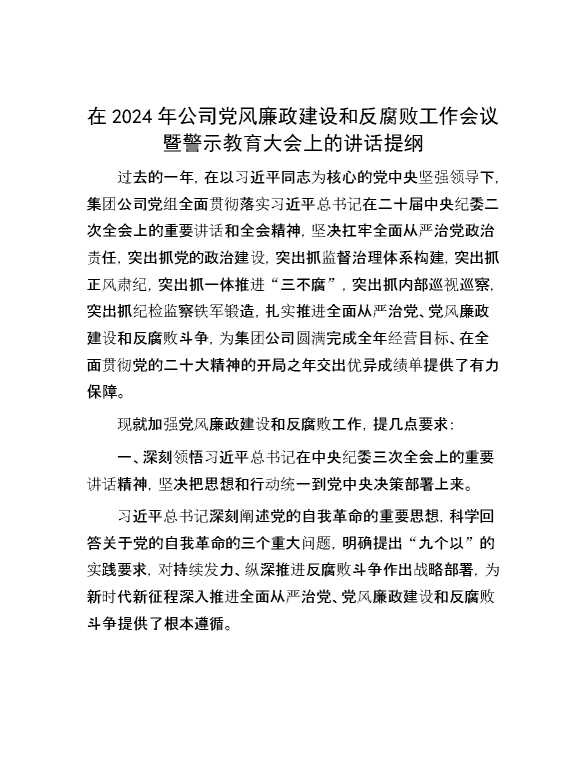 在2024年公司党风廉政建设和反腐败工作会议暨警示教育大会上的讲话提纲 2024-02-19 Word模板 107 购买前,请一定要先点击这里看看,欢迎持续关注,精彩模板每天推送 预览结束,本文件为word文档,一共4页,共1826字,请购买后,下载后查看 购买前,请一定要先点击这里看看,欢迎持续关注,精彩模板每天推送 资源下载下载价格29 RMBVIP免费升级VIP点击检测网盘有效后购买有任何充值和下载问题请加微信:xuexixuexi66 0 演讲发言