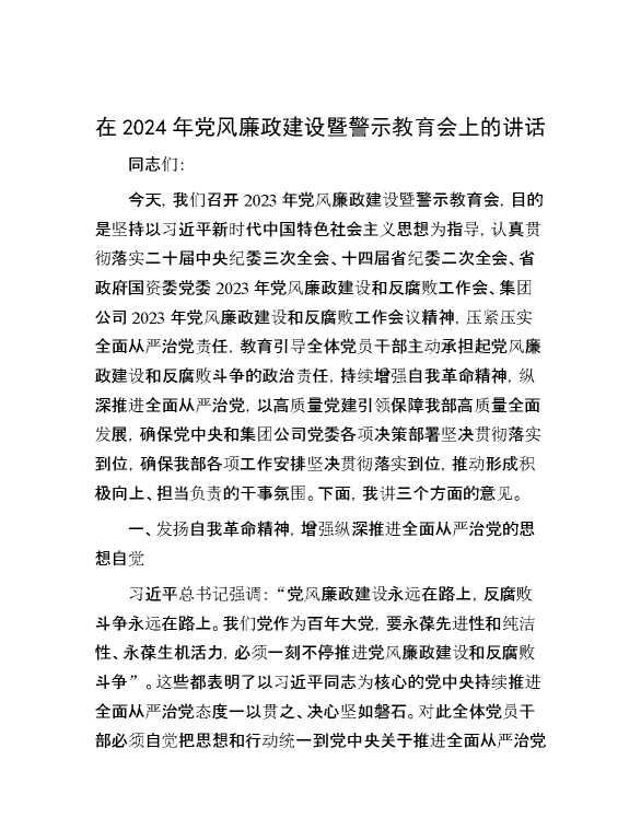 在2024年党风廉政建设暨警示教育会上的讲话 2024-02-19 Word模板 111 购买前,请一定要先点击这里看看,欢迎持续关注,精彩模板每天推送 预览结束,本文件为word文档,一共8页,共3675字,请购买后,下载后查看 购买前,请一定要先点击这里看看,欢迎持续关注,精彩模板每天推送 资源下载下载价格29 RMBVIP免费升级VIP点击检测网盘有效后购买有任何充值和下载问题请加微信:xuexixuexi66 0 演讲发言