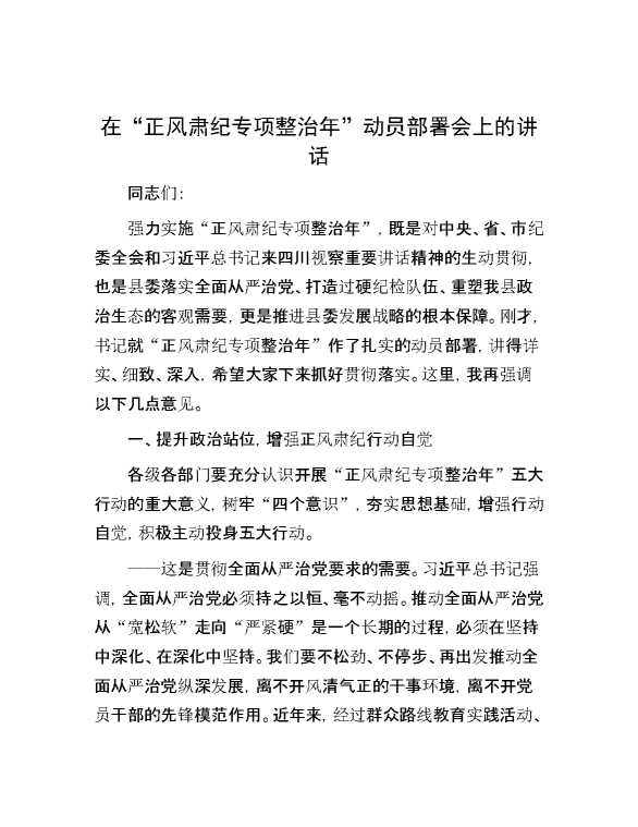 在“正风肃纪专项整治年”动员部署会上的讲话 2024-02-19 Word模板 105 购买前,请一定要先点击这里看看,欢迎持续关注,精彩模板每天推送 预览结束,本文件为word文档,一共9页,共3934字,请购买后,下载后查看 购买前,请一定要先点击这里看看,欢迎持续关注,精彩模板每天推送 资源下载下载价格29 RMBVIP免费升级VIP点击检测网盘有效后购买有任何充值和下载问题请加微信:xuexixuexi66 0 演讲发言