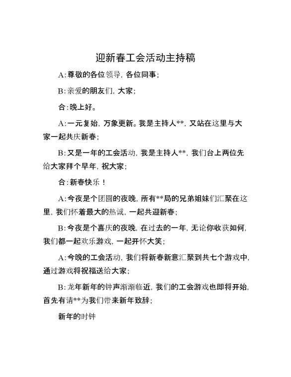 迎新春工会活动主持稿 2024-02-19 Word模板 102 购买前,请一定要先点击这里看看,欢迎持续关注,精彩模板每天推送 预览结束,本文件为word文档,一共7页,共2077字,请购买后,下载后查看 购买前,请一定要先点击这里看看,欢迎持续关注,精彩模板每天推送 资源下载下载价格29 RMBVIP免费升级VIP点击检测网盘有效后购买有任何充值和下载问题请加微信:xuexixuexi66 0 演讲发言