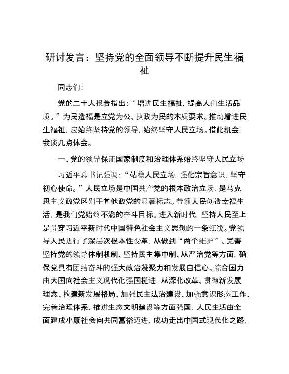 研讨发言:坚持党的全面领导 不断提升民生福祉 2024-02-19 Word模板 100 购买前,请一定要先点击这里看看,欢迎持续关注,精彩模板每天推送 预览结束,本文件为word文档,一共5页,共2332字,请购买后,下载后查看 购买前,请一定要先点击这里看看,欢迎持续关注,精彩模板每天推送 资源下载下载价格29 RMBVIP免费升级VIP点击检测网盘有效后购买有任何充值和下载问题请加微信:xuexixuexi66 0 演讲发言
