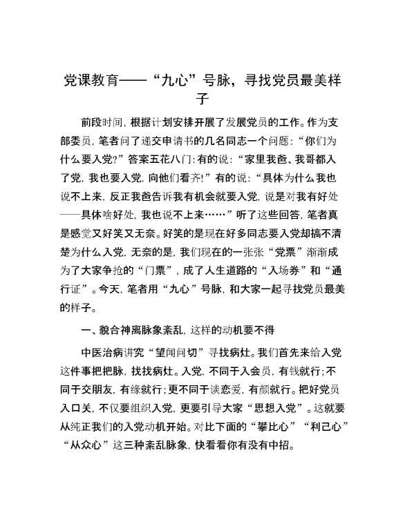 党课教育——“九心”号脉,寻找党员最美样子 2024-02-25 Word模板 119 购买前,请一定要先点击这里看看,欢迎持续关注,精彩模板每天推送 预览结束,本文件为word文档,一共8页,共3377字,请购买后,下载后查看 购买前,请一定要先点击这里看看,欢迎持续关注,精彩模板每天推送 资源下载下载价格29 RMBVIP免费升级VIP点击检测网盘有效后购买有任何充值和下载问题请加微信:xuexixuexi66 0 党课及生活会