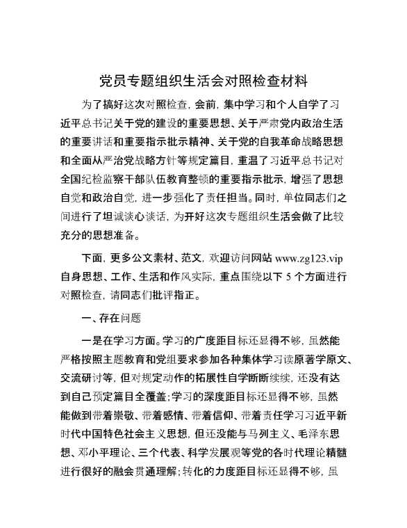 党员专题组织生活会对照检查材料 2024-02-25 Word模板 102 购买前,请一定要先点击这里看看,欢迎持续关注,精彩模板每天推送 预览结束,本文件为word文档,一共6页,共2476字,请购买后,下载后查看 购买前,请一定要先点击这里看看,欢迎持续关注,精彩模板每天推送 资源下载下载价格29 RMBVIP免费升级VIP点击检测网盘有效后购买有任何充值和下载问题请加微信:xuexixuexi66 0 党课及生活会