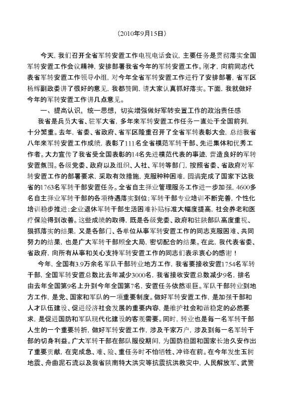 娄勤俭:在全省军队转业干部安置工作电视电话会议上的讲话 2024-02-28 Word模板 118 购买前,请一定要先点击这里看看,欢迎持续关注,精彩模板每天推送 预览结束,本文件为word文档,一共5页,共3758字,请购买后,下载后查看 购买前,请一定要先点击这里看看,欢迎持续关注,精彩模板每天推送 资源下载下载价格29 RMBVIP免费升级VIP点击检测网盘有效后购买有任何充值和下载问题请加微信:xuexixuexi66 0 演讲发言