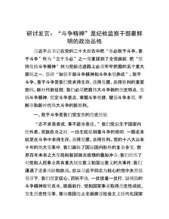 研讨发言:“斗争精神”是纪检监察干部最鲜明的政治品格 2024-02-28 Word模板 108 购买前,请一定要先点击这里看看,欢迎持续关注,精彩模板每天推送 预览结束,本文件为word文档,一共7页,共3246字,请购买后,下载后查看 购买前,请一定要先点击这里看看,欢迎持续关注,精彩模板每天推送 资源下载下载价格29 RMBVIP免费升级VIP点击检测网盘有效后购买有任何充值和下载问题请加微信:xuexixuexi66 0 演讲发言