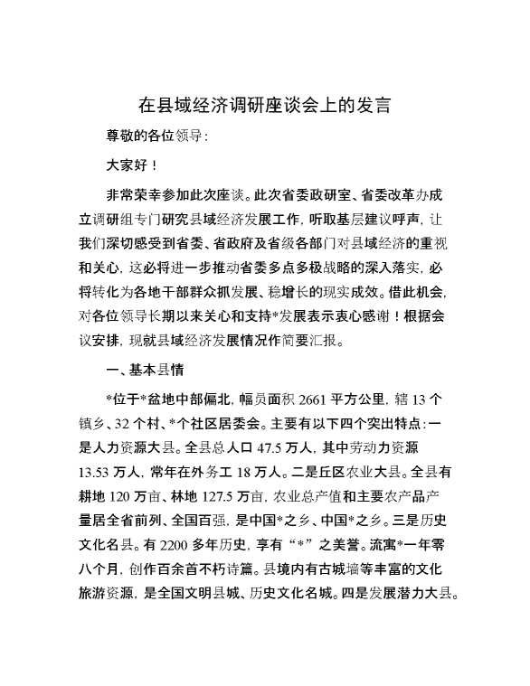 在县域经济调研座谈会上的发言 2024-03-04 Word模板 96 购买前,请一定要先点击这里看看,欢迎持续关注,精彩模板每天推送 预览结束,本文件为word文档,一共7页,共3443字,请购买后,下载后查看 购买前,请一定要先点击这里看看,欢迎持续关注,精彩模板每天推送 资源下载下载价格29 RMBVIP免费升级VIP点击检测网盘有效后购买有任何充值和下载问题请加微信:xuexixuexi66 0 演讲发言