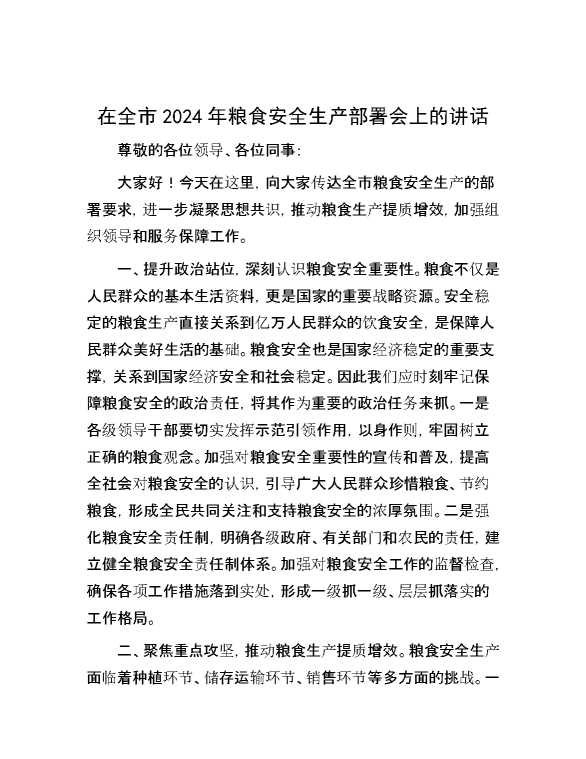 在全市2024年粮食安全生产部署会上的讲话 2024-03-04 Word模板 105 购买前,请一定要先点击这里看看,欢迎持续关注,精彩模板每天推送 预览结束,本文件为word文档,一共4页,共2038字,请购买后,下载后查看 购买前,请一定要先点击这里看看,欢迎持续关注,精彩模板每天推送 资源下载下载价格29 RMBVIP免费升级VIP点击检测网盘有效后购买有任何充值和下载问题请加微信:xuexixuexi66 0 演讲发言