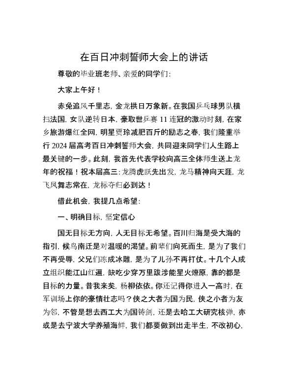 在百日冲刺誓师大会上的讲话 2024-03-04 Word模板 92 购买前,请一定要先点击这里看看,欢迎持续关注,精彩模板每天推送 预览结束,本文件为word文档,一共5页,共1936字,请购买后,下载后查看 购买前,请一定要先点击这里看看,欢迎持续关注,精彩模板每天推送 资源下载下载价格29 RMBVIP免费升级VIP点击检测网盘有效后购买有任何充值和下载问题请加微信:xuexixuexi66 0 演讲发言
