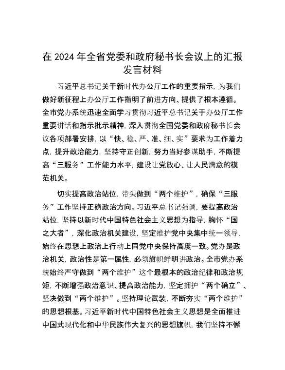 在2024年全省党委和政府秘书长会议上的汇报发言材料 2024-03-04 Word模板 94 购买前,请一定要先点击这里看看,欢迎持续关注,精彩模板每天推送 预览结束,本文件为word文档,一共6页,共3109字,请购买后,下载后查看 购买前,请一定要先点击这里看看,欢迎持续关注,精彩模板每天推送 资源下载下载价格29 RMBVIP免费升级VIP点击检测网盘有效后购买有任何充值和下载问题请加微信:xuexixuexi66 0 演讲发言